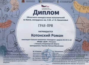 Роман Котонский стал обладателем ГРАН-ПРИ областного конкурса юных исполнителей на баяне, аккордеоне им. Касьяновых!