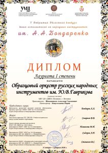 Оркестр русских народных инструментов им. Ю.В.Гаврикова стал Лауреатом 1 степени открытого областного конкурса исполнителей на народных инструментах им. Бондаренко